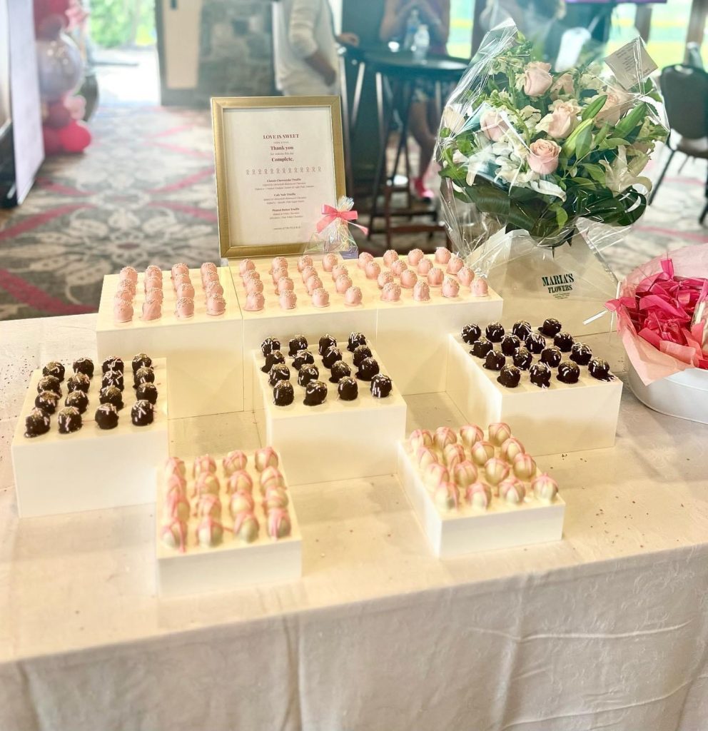 Think of it like a food truck—but instead of cooking on board, we’re delivering pre-crafted, artisan desserts and treats straight from our kitchen to your celebration. From signature truffles to seasonal sweets and indulgent bites, everything is beautifully displayed and served from our mobile dessert lounge. We’re now booking for spring and summer events—so if you’re looking to sweeten up your next gathering, let’s make it happen. Let the Truffle Bus bring the magic to you.